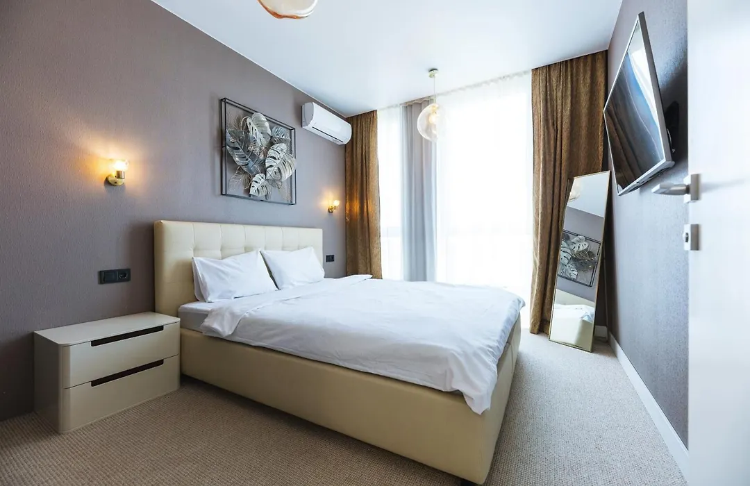 В номере гостям предоставляется гардеробная, диван и кофеварка. Для удобства гостей предусмотрели гладильные принадлежности и систему климат-контроля. В ванных комнатах имеются такие удобства, как отдельный туалет, ванна и душ, а также фен и банные полотенца.